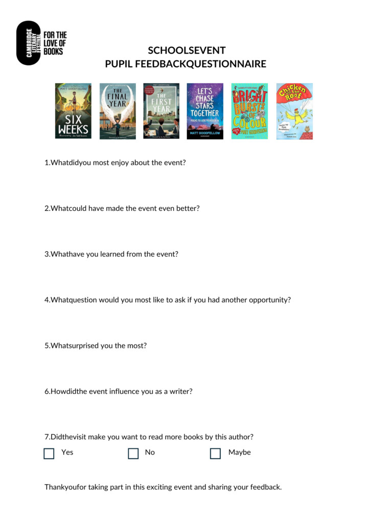 We have created a Pupil Feedback Form that you can download from the website now. We’ll also be creating a Teacher Resource Sheet in advance of the event to help with your class preparation.